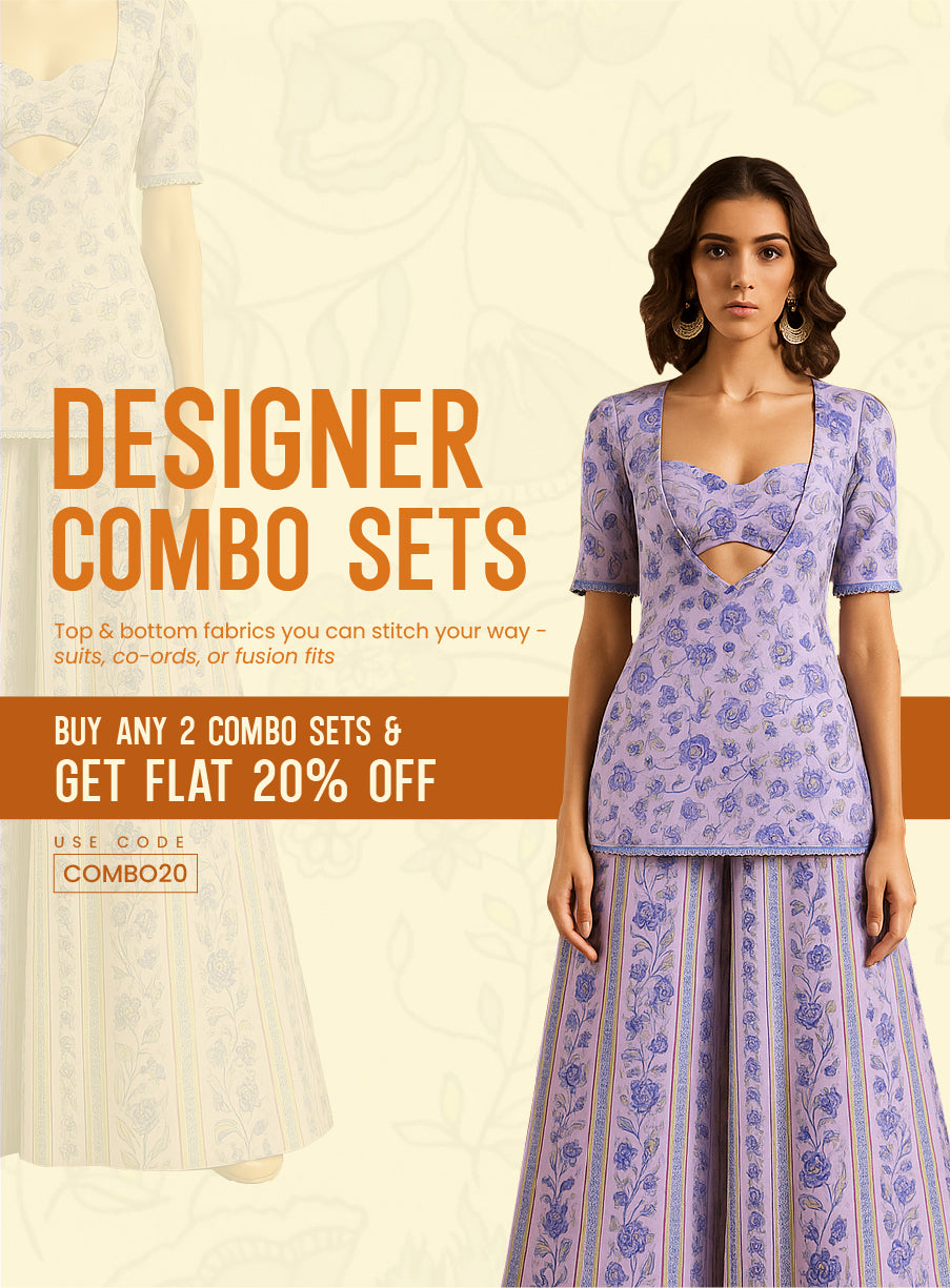 Lavender Breeze Handloom Cotton Combo Set (Top & Bottom 2.5 Meters Each)