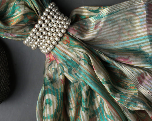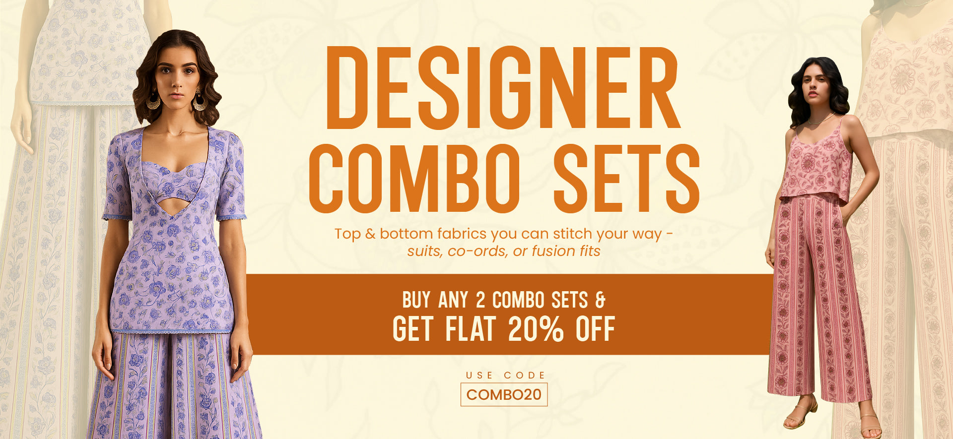 Ornament Floral & Geomatric Harmony Natural Crepe Combo Set (Top & Bottom 2.5 Meters Each)