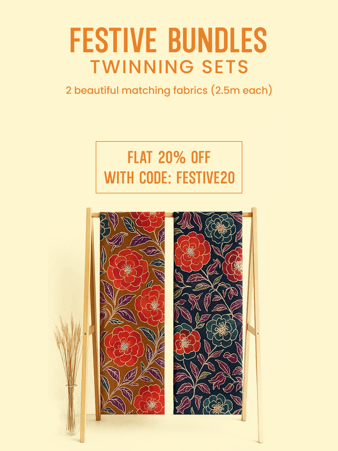 Warm Bloom Harmony Handloom Combo Set (Top & Bottom 2.5 Meters Each)