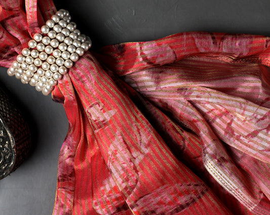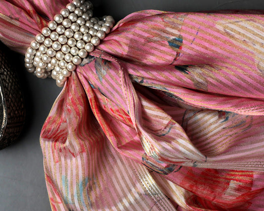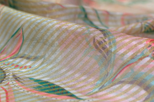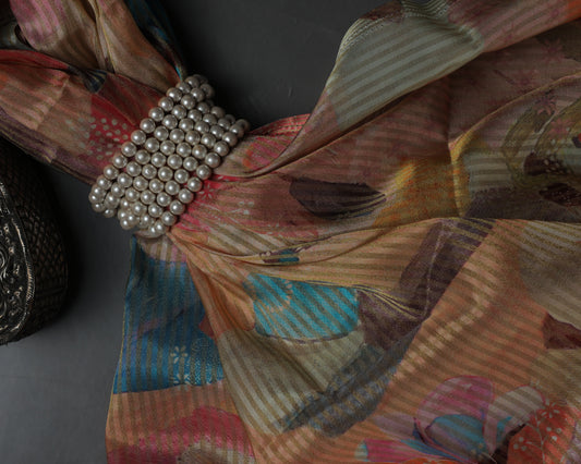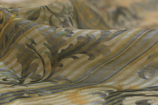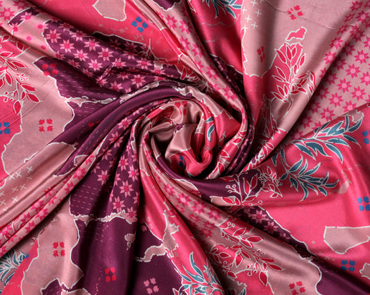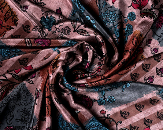 Vintage Rosewood Floral Patch & Striped Blossom Natural Crepe Combo Set ( Top & Bottom 2.5 Meters Each)