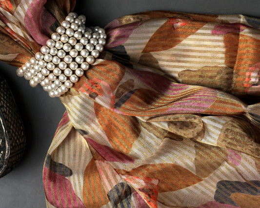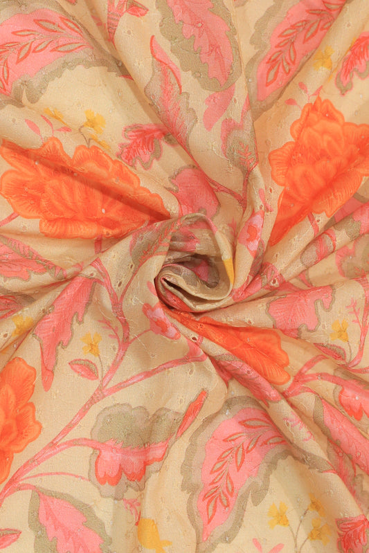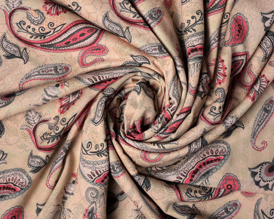 Subtle Peach Tones With Artistic Flair Natural Crepe Combo Set ( Top & Bottom 2.5 Meters Each)