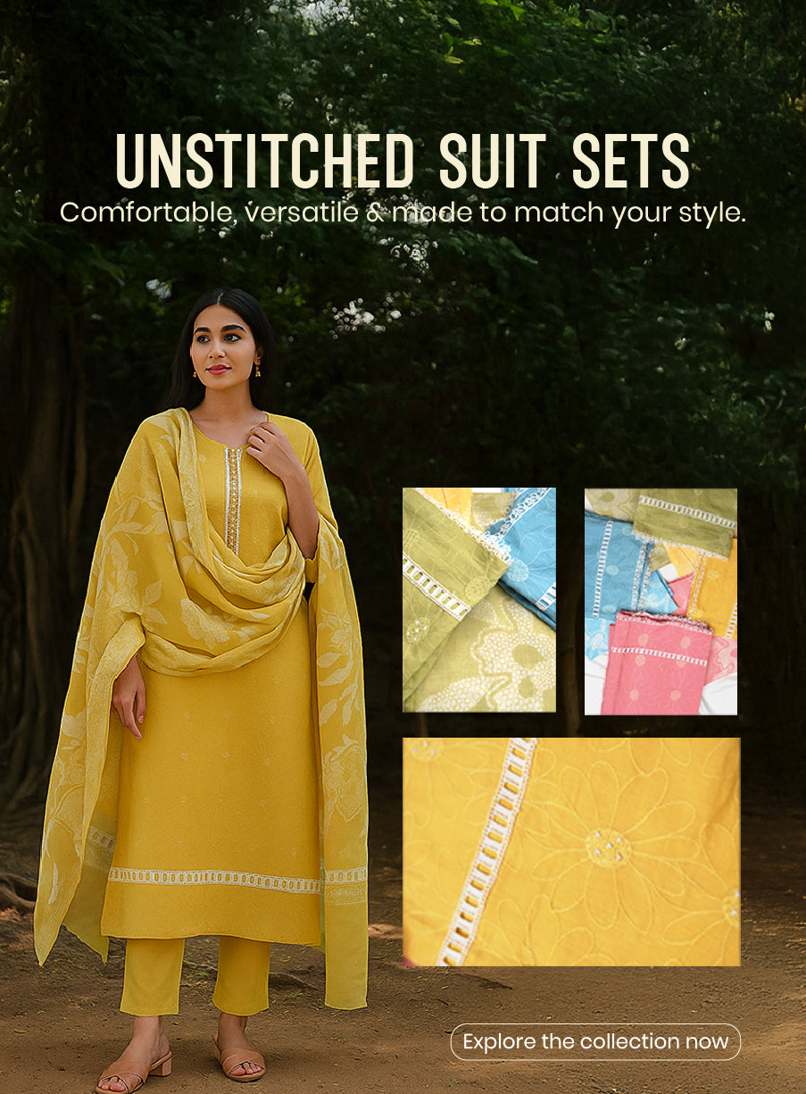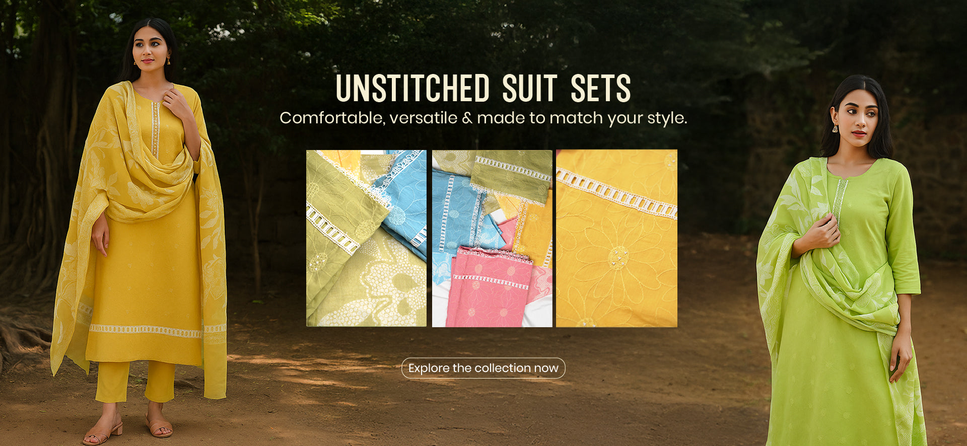 Leafsong Elegance Handloom Cotton Combo Set (Top & Bottom 2.5 Meters Each)