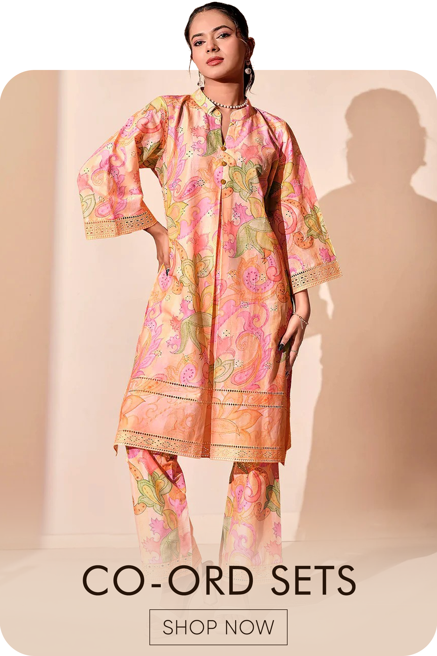 Peach Paisley chikankari Embroidered Co-ord Set