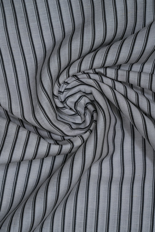 Black Thick Stripes Pure Soft Linen Shirting Fabric (Width 44 Inches)