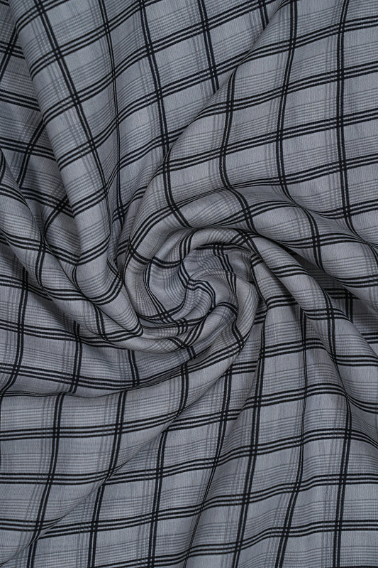 Black Checks Pure Soft Linen Shirting Fabric (Width 44 Inches)