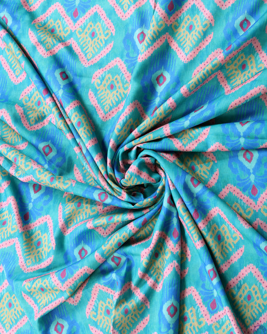 Aqua Green Chevron Digital Printed Pure Muslin Fabric