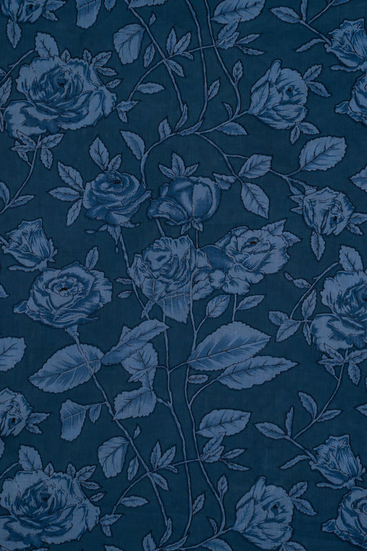 Light Blue Vintage Floral Printed Pure Cotton Fabric