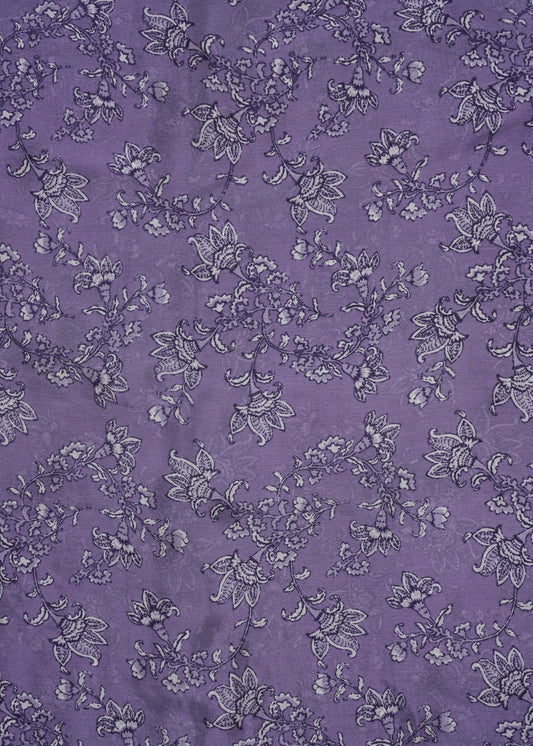 Light Purple Floral Vines Printed Pure Chinon Fabric