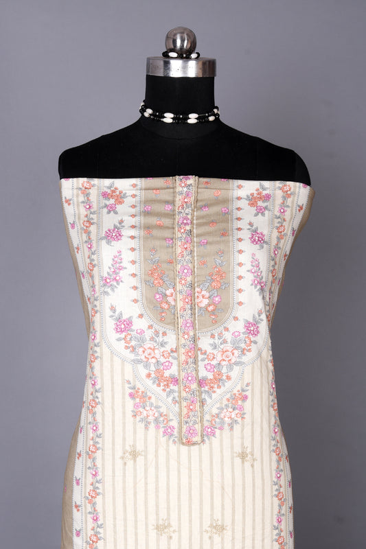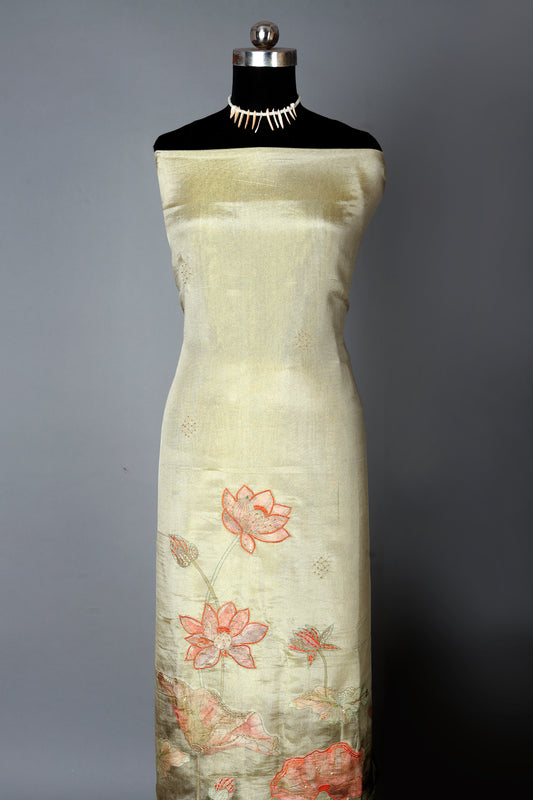 Light Gold Beige Lotus Motif Embroidered Organza Shimmer Unstitched Suit Set