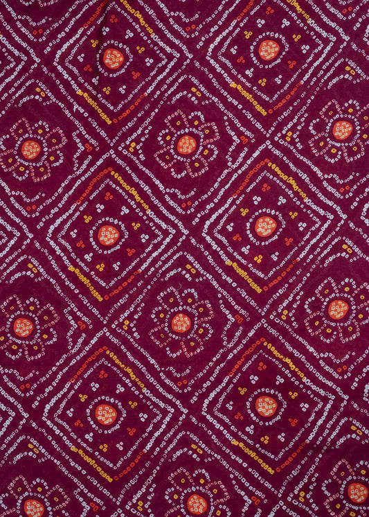 Magenta Color Bandhani Printed Pure Muslin Fabric