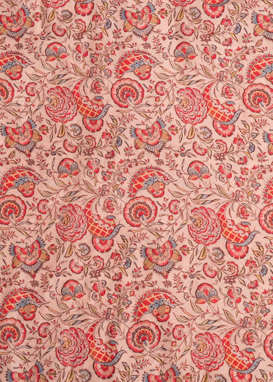 Light Peach & Multicolor Floral Printed Pure Muslin Fabric
