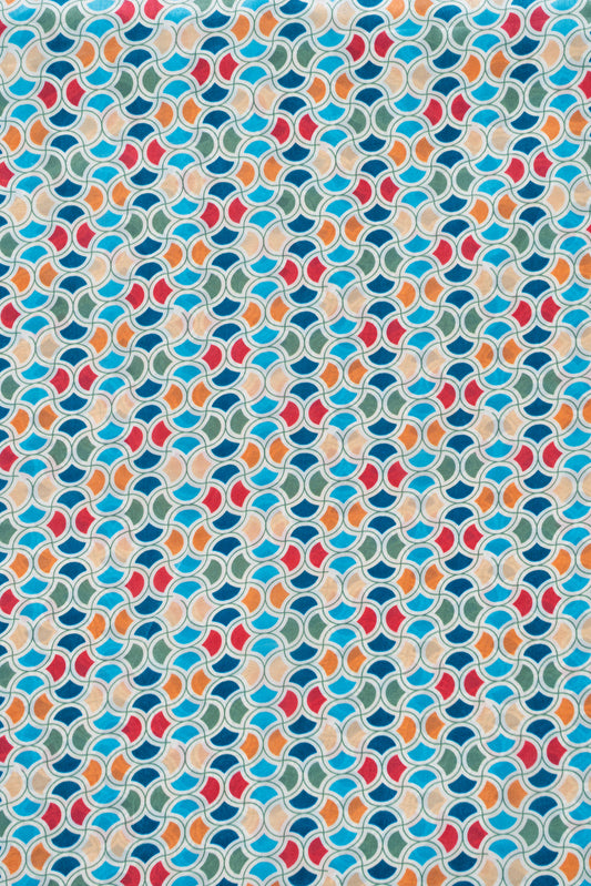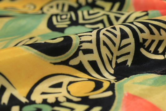 Multicolor Abstract Printed Pure Natural Crepe Fabric (Width 44 Inches)