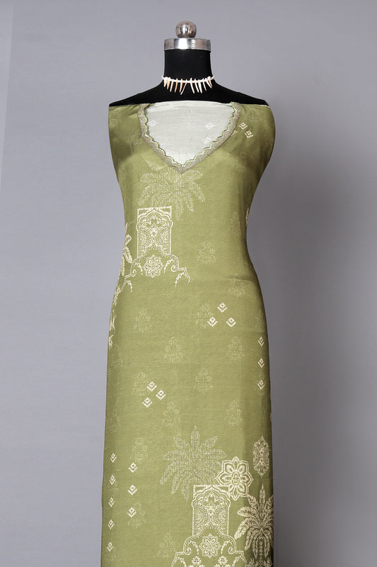 Mehendi Green Color Pure Muslin Unstitched Suit Set With Organza Dupatta