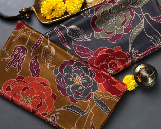 Midnight & Mustard Bloom Story Pure Natural Crepe Combo (2 Qty & Length : 2.5 Meters Each)