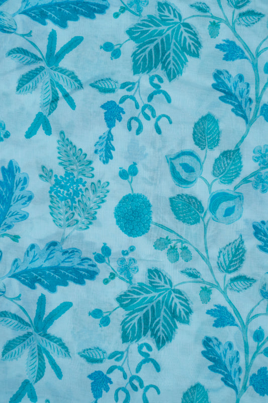 Blue Forest Digital Printed Pure Malai Chanderi Fabric (Width 44 Inches)