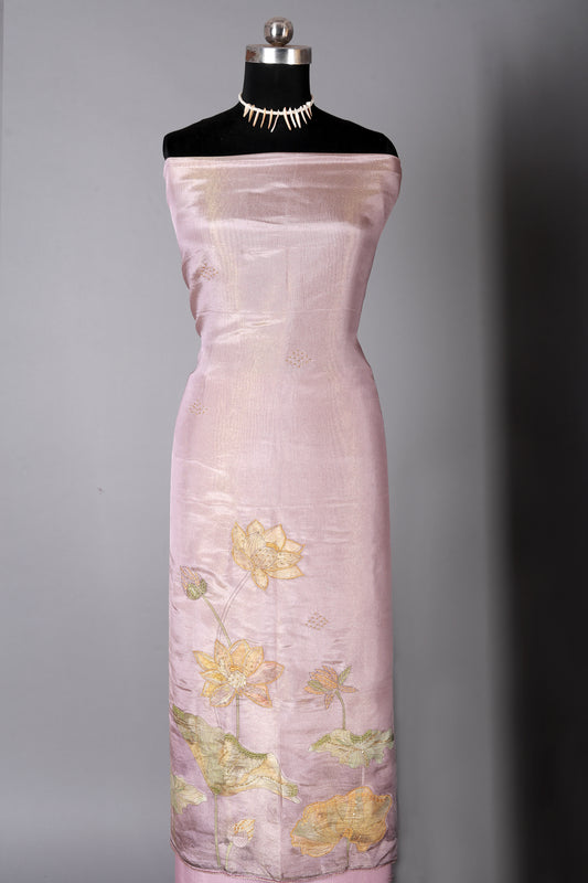 Dusty Pink Lotus Motif Embroidered Organza Shimmer Unstitched Suit Set