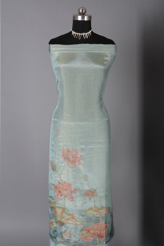 Sea Green Lotus Motif Embroidered Organza Shimmer Unstitched Suit Set