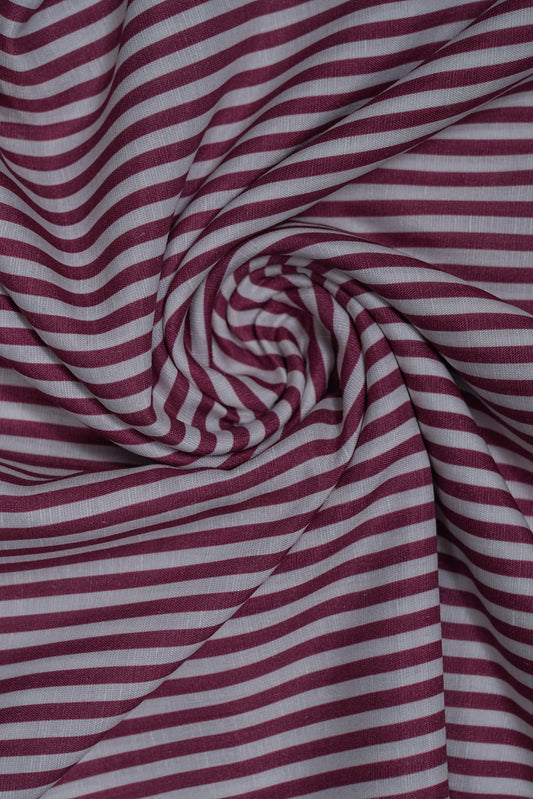 Wine Red Thick Stripes Pure Soft Linen Fabric (Width 44 Inches)