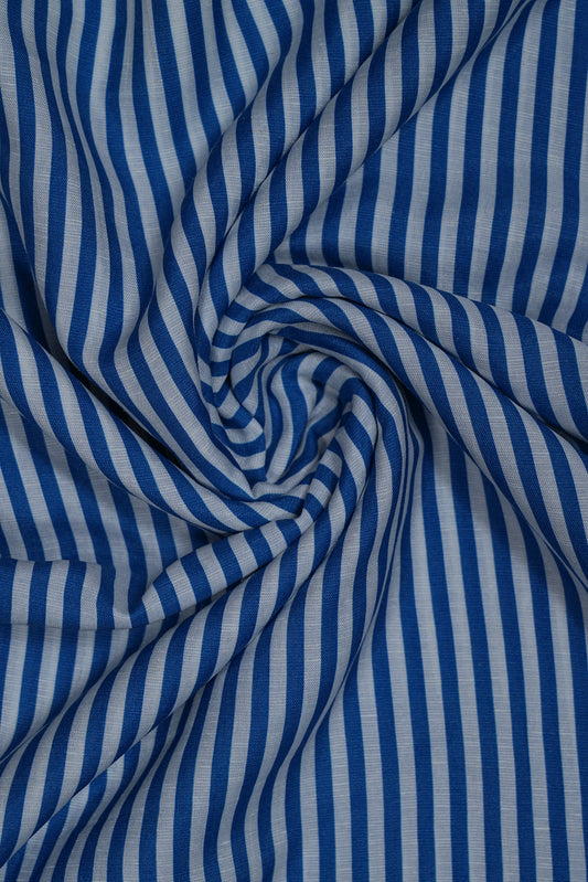 Blue Classic Stripes Soft Linen Shirting Fabric (Width 44 Inches)