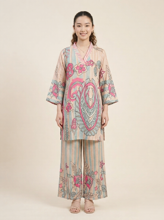 Blush Sunset Pure Natural linen Summer Co-Ord Set