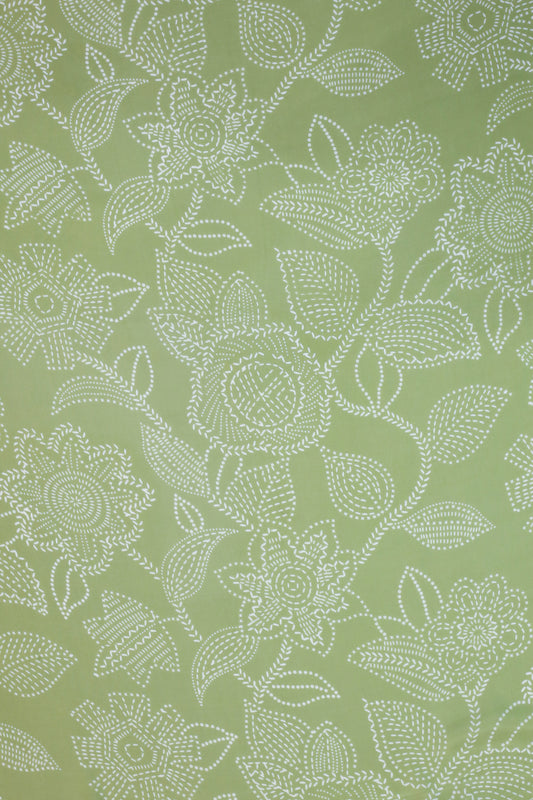 Pure White & Dark Green Flower Printed Pure Muslin Fabric