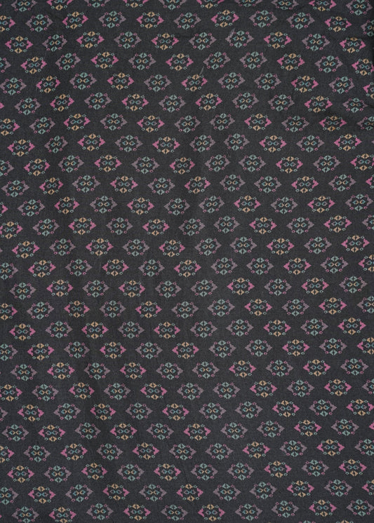 Charcoal Grey Abstract Pure Muslin Printed Fabric