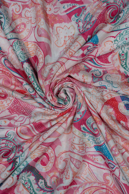 Baby Pink Paisley Printed Pure Muslin Fabric (Width 44 Inches)