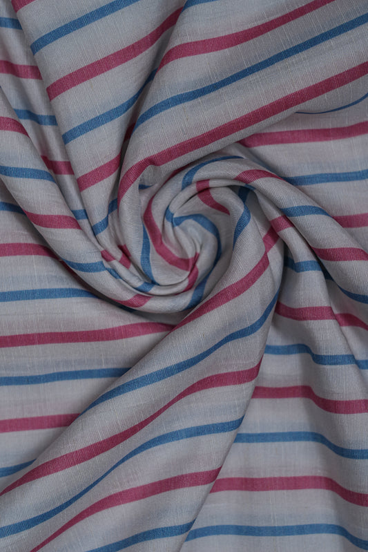 Blue & Red Stripes Pure Soft Linen Fabric (Width 44 Inches)