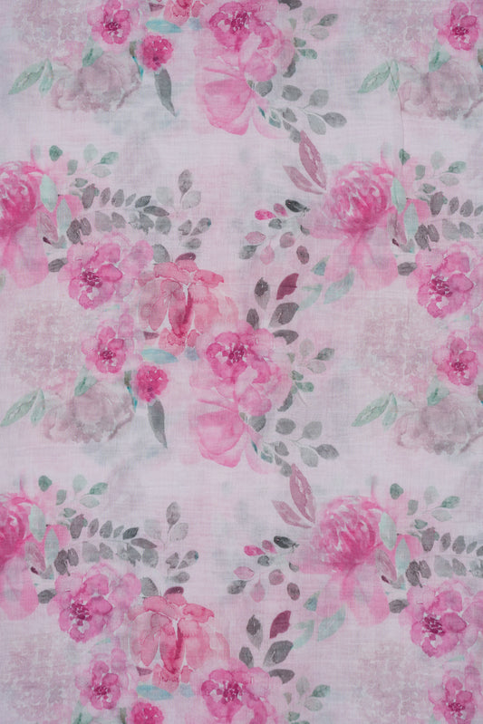 Pink Floral Digital Printed Pure Malai Chanderi Fabric (Width 44 Inches)