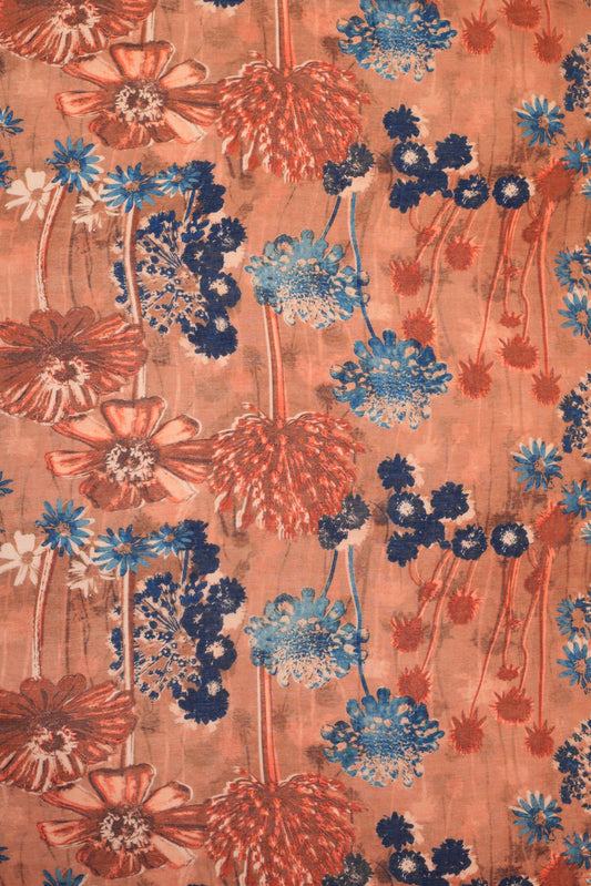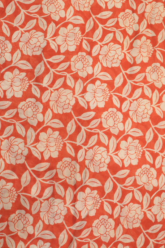 Vintage Rosewood Bloom Floral Printed Pure Malai Chanderi Fabric (Width 44 Inches)