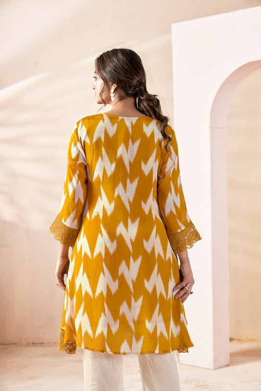 Golden Ochre Chinon Ikat Print Tunic Kurti