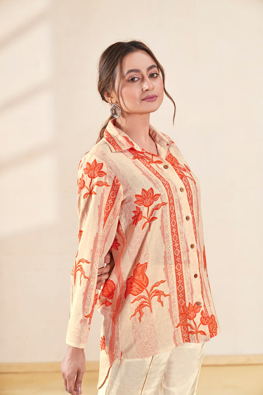 Vintage Rose Bloom Premium Cupro Muslin Shirt