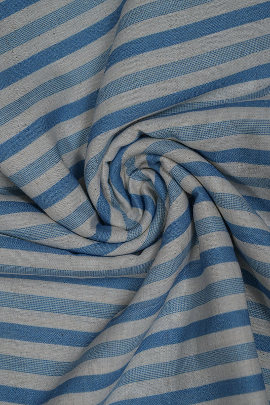Blue Dual Stripes Handloom Cotton Shirting Fabric (Width 44 Inches)