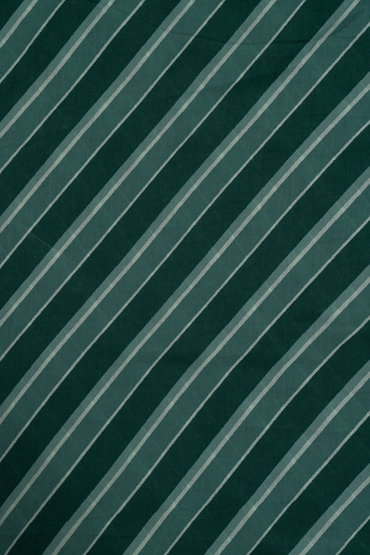 Unisex Green Stripes Pure Cotton Kurta Fabric & White Pure Cotton Pyjama Fabric (2.5 Meters)
