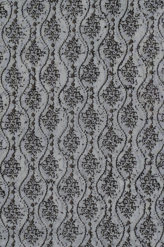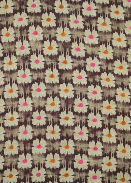 Unisex Brown & Warm White Floral Handloom Pure Cotton Kurta Fabric And White Pure Cotton Pyjama Fabric (2.5 Meters)