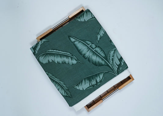 Unisex Leaf Green Printed Pure Soft Cotton Kurta Fabric & White Pure Cotton Pyjama Fabric (2.5 Meters)