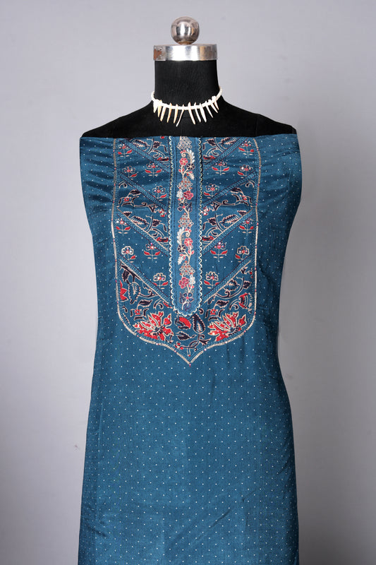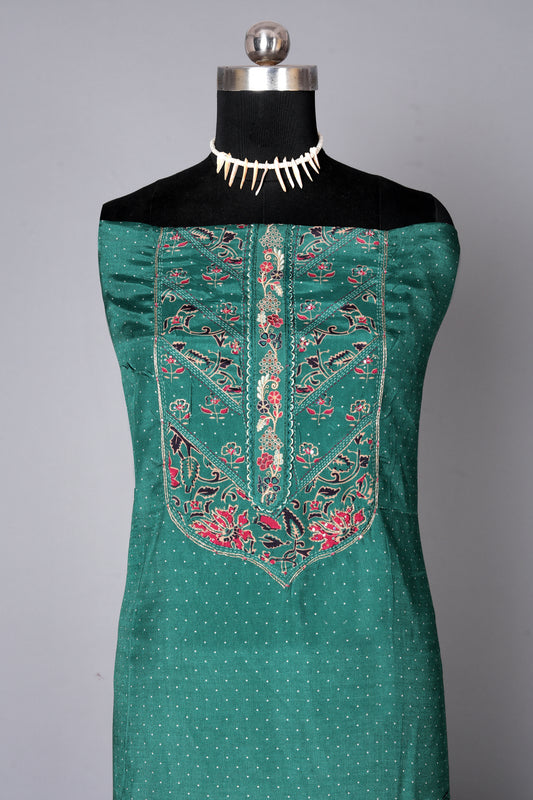 Pista Green Color Floral Embroidered Pure Muslin Unstitched Suit Set