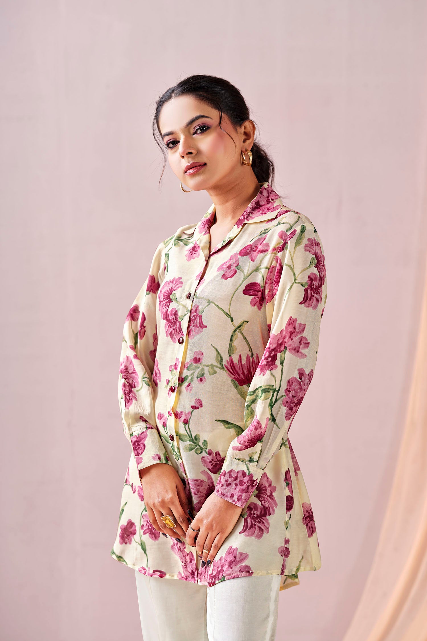 Vintage Rose Bloom Premium Cupro Muslin Shirt