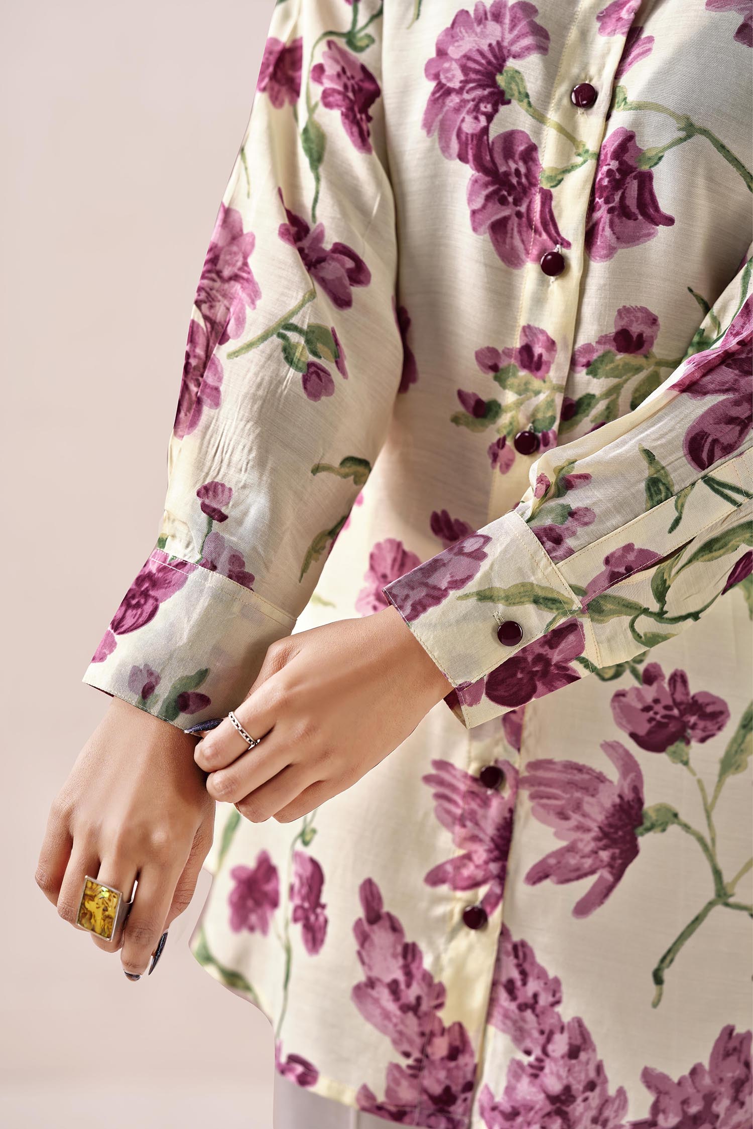 Step out in confidence and elegance with our Vintage Rose Bloom Shirt. Featuring delicate lavender floral prints on soft, luxurious cotton silk (cupro), this lightweight and breathable shirt is perfect for office wear, brunches, small gatherings, outings, and casual meet-ups. Its smooth, rich texture ensures all-day comfort while keeping your look graceful, refined, and effortlessly stylish.