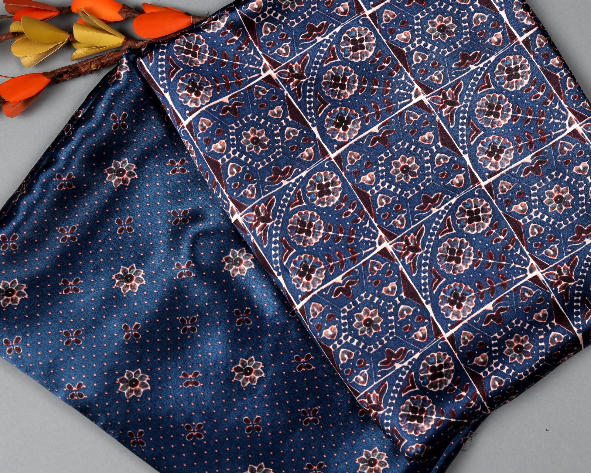 This Gajji Silk Fabric is digitally printed with a Geometric design. It is ideal for a party or get together. It can be styled as a Tunic dress or the trendy Co-ord set for the Festive season on its way. Gajji Silk has a satin finish done on silk fabric. It has a smooth, glossy, and rich texture.