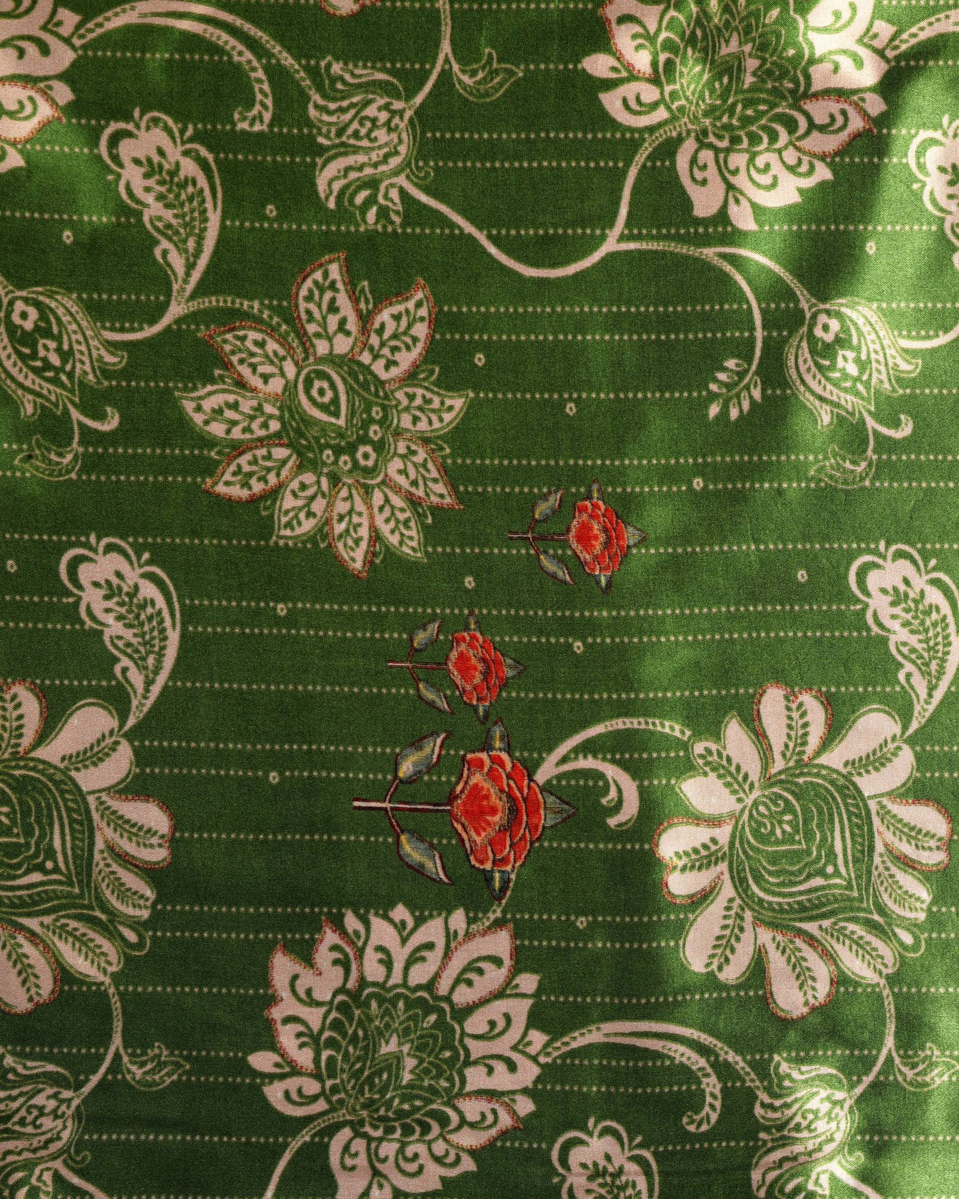 This Gajji Silk Fabric is digitally printed with a Floral design. It is ideal for a party or get together. It can be styled as a Tunic dress or the trendy Co-ord set for the Festive season on its way. Gajji Silk has a satin finish done on silk fabric. It has a smooth, glossy, and rich texture.