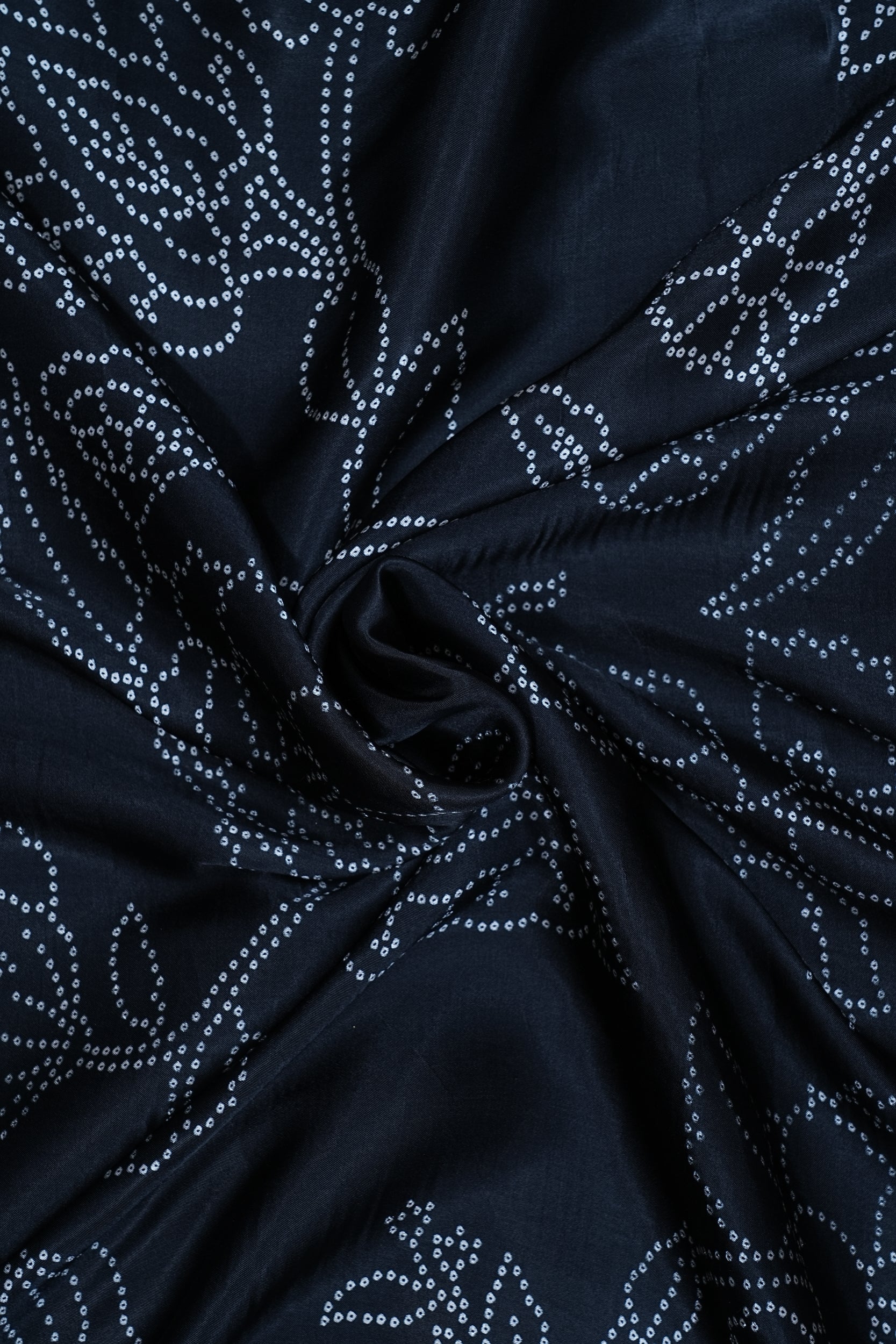 This Gajji Silk Fabric is Table printed with a Floral design. It is ideal for a party or get-together. It can be styled as a Tunic dress or the trendy Co-ord set for the Festive season on its way. Gajji Silk has a satin finish done on silk fabric. It has a smooth, glossy, and rich texture.