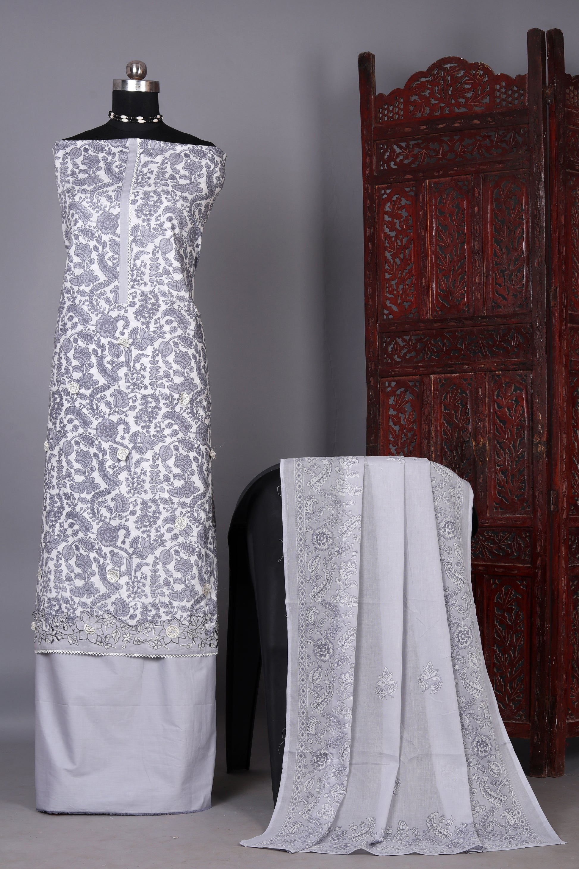 Grey Treasure Designer Unstitched Suit Set