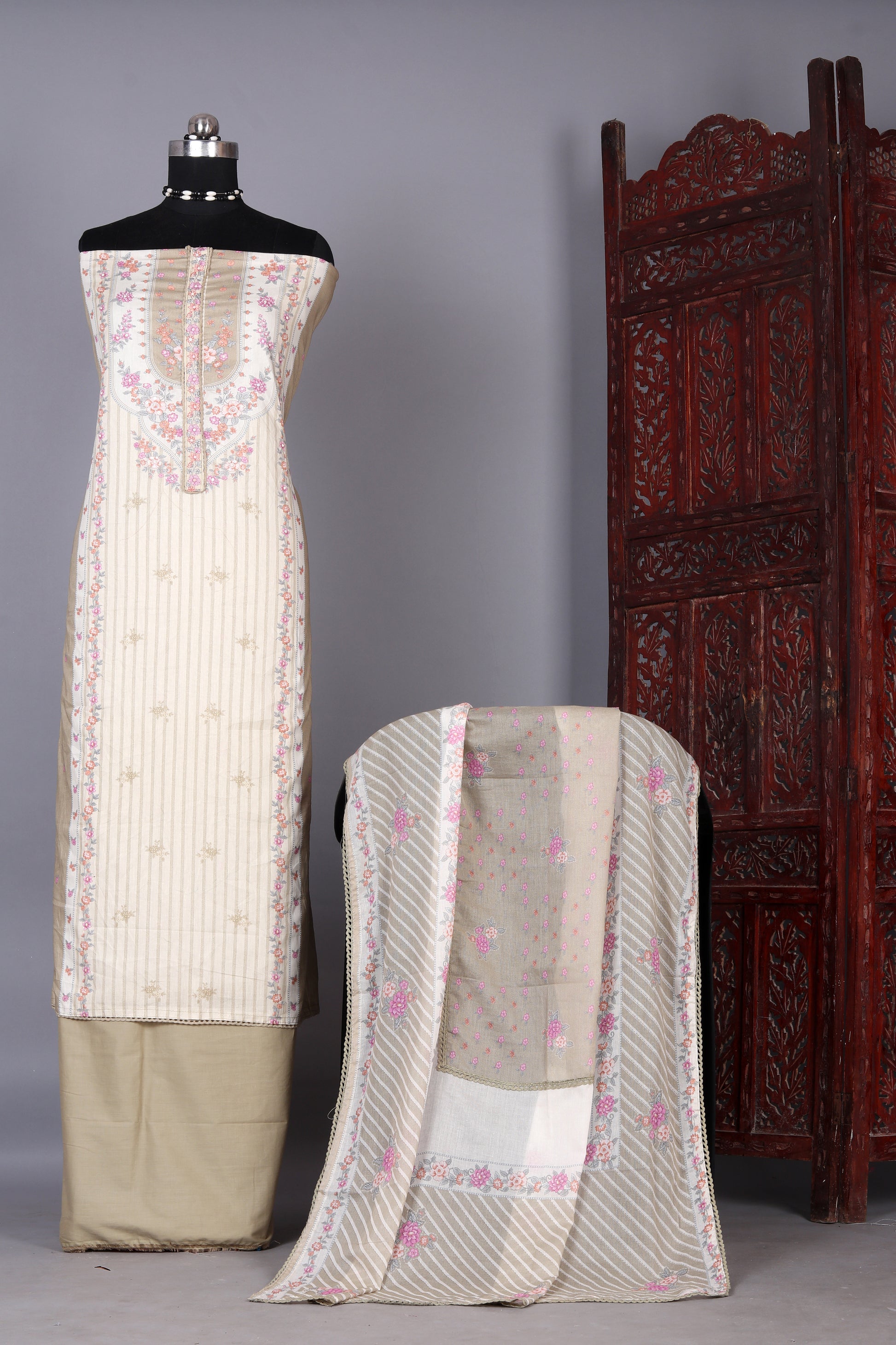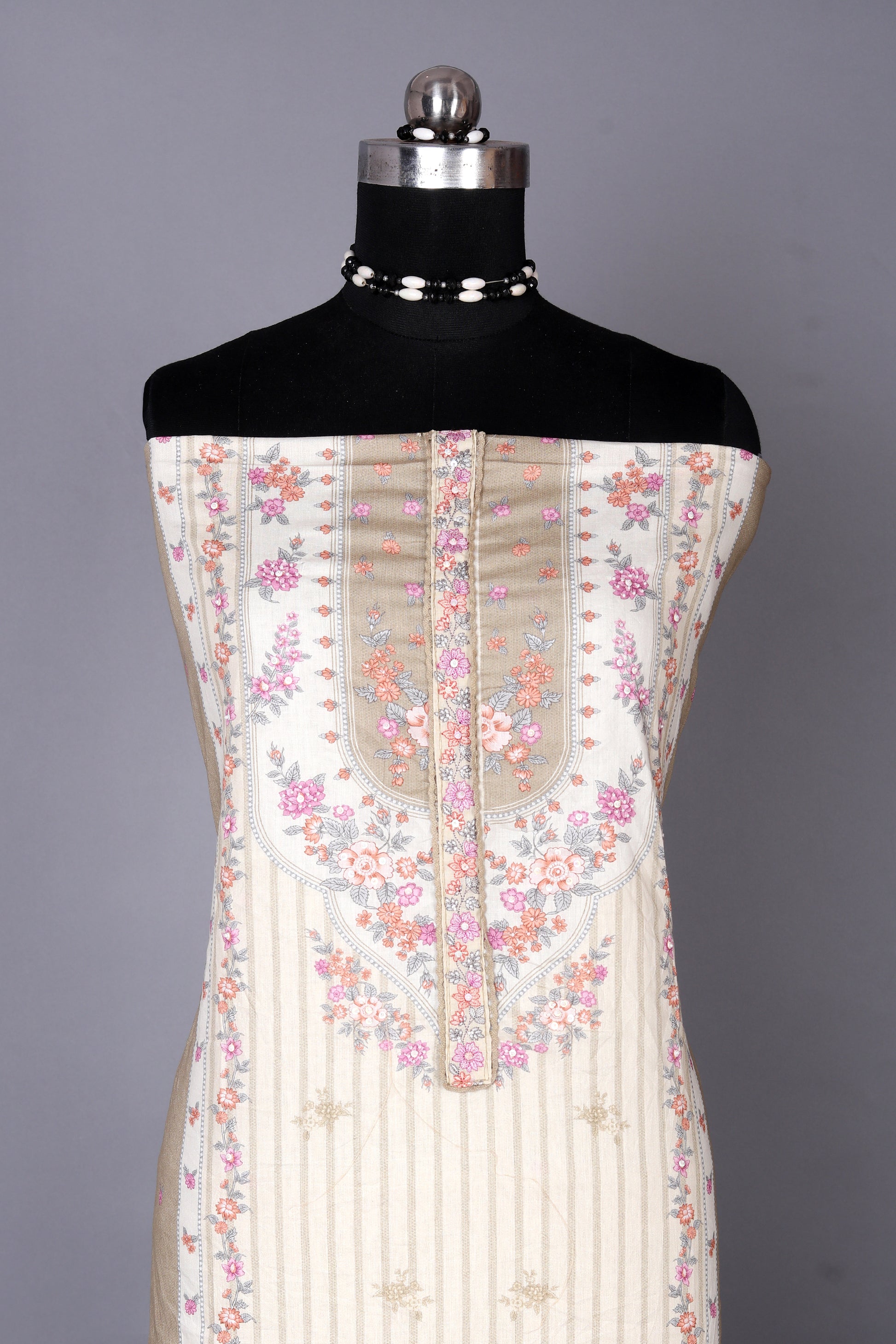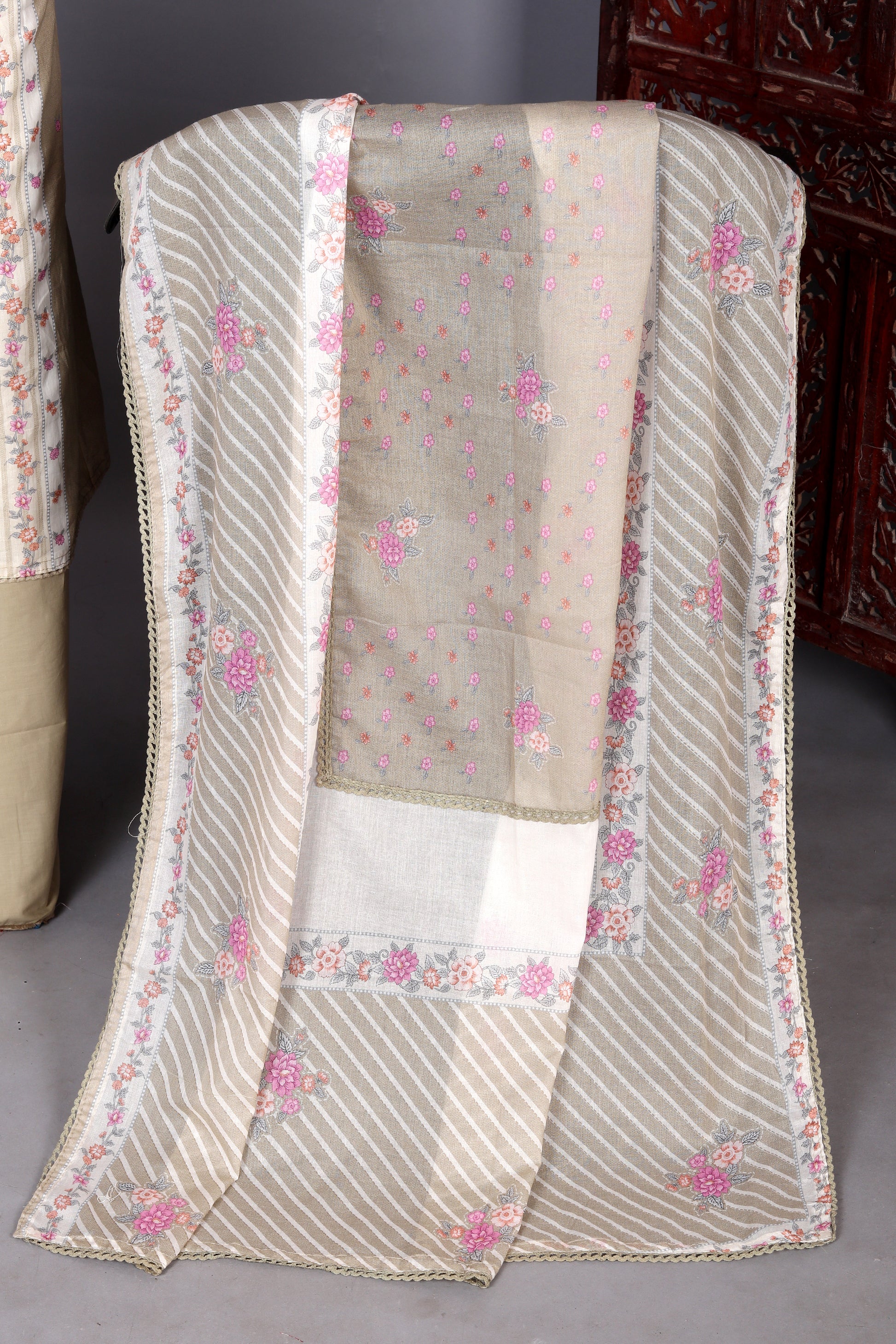 Light Chiku Brown Floral Digital Printed Unstitched Suit Set