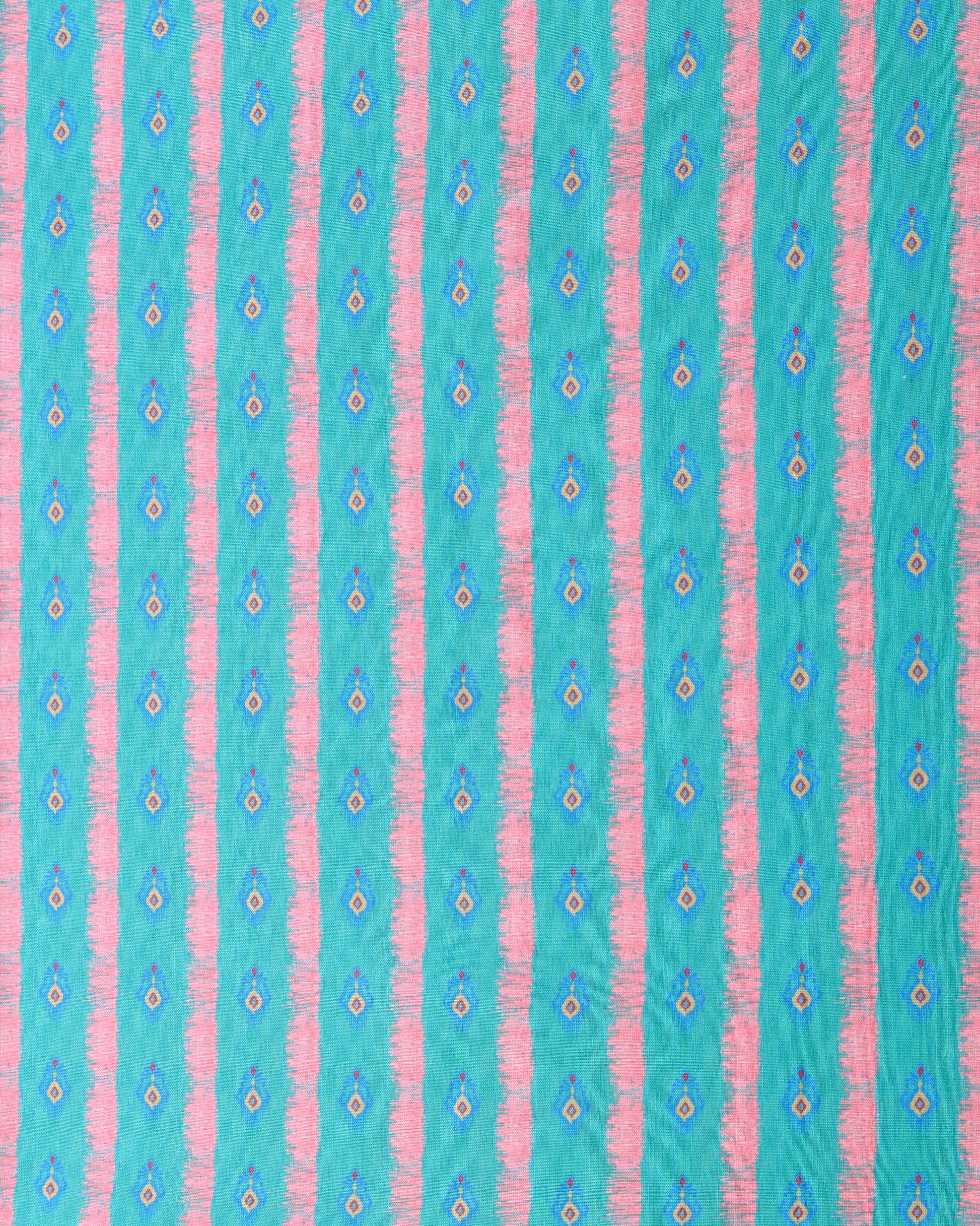 Aqua Ikkat Stripes Magic Slub Printed Combo Set (Top & Bottom 2.5 Meters Each)