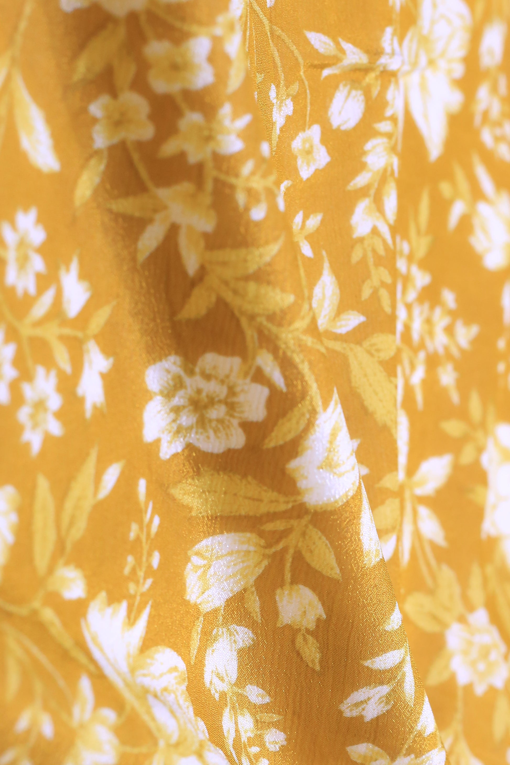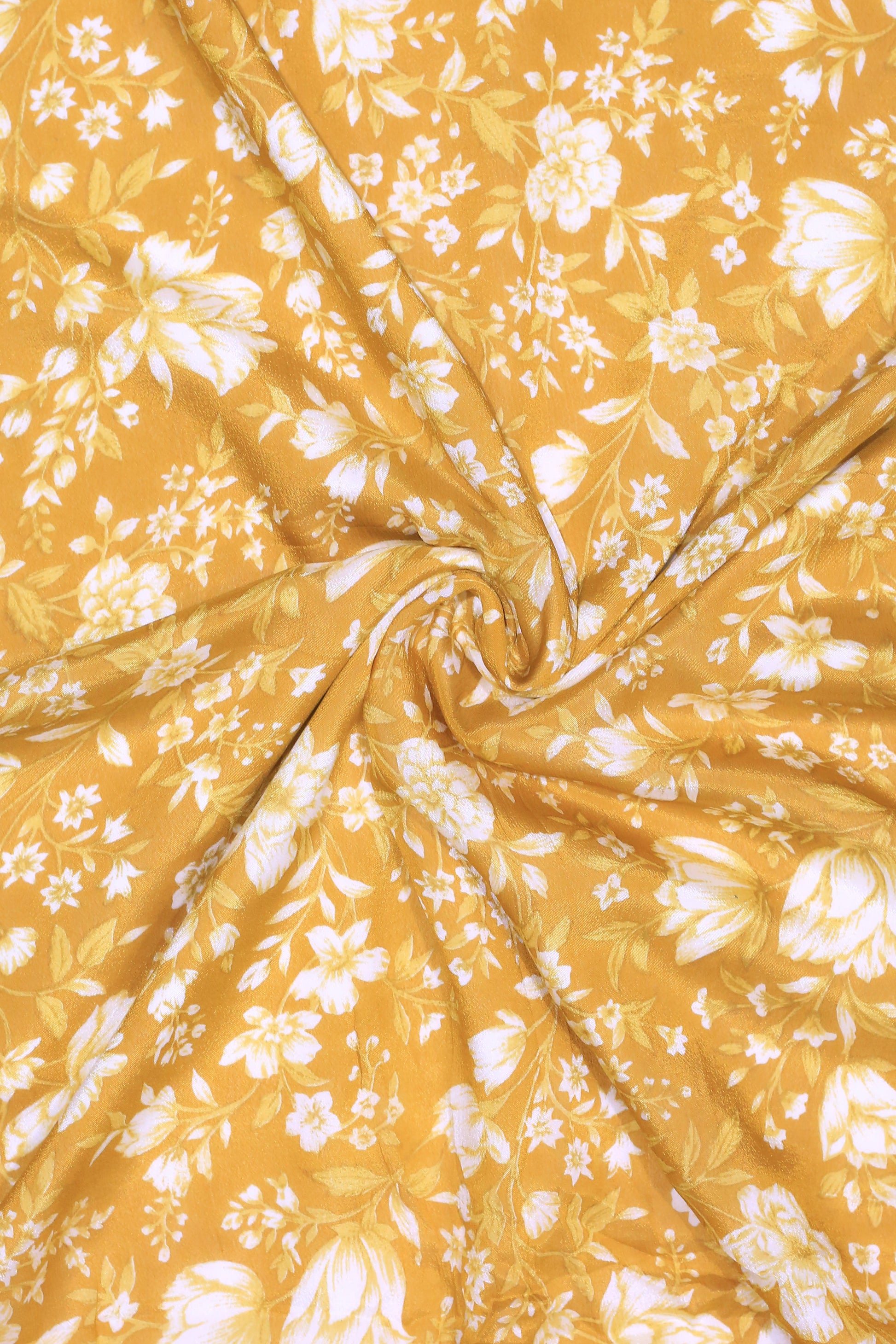 This Chinon fabric is digitally printed with a floral design. It is ideal for Comfort wear. It can be styled as a tiered Dress, a kaftan. Chinon fabric is a variation of Chiffon fabric. It has more sheen than Chiffon fabric. It has a wonderful feel and fall. It is a sheer, lightweight fabric.