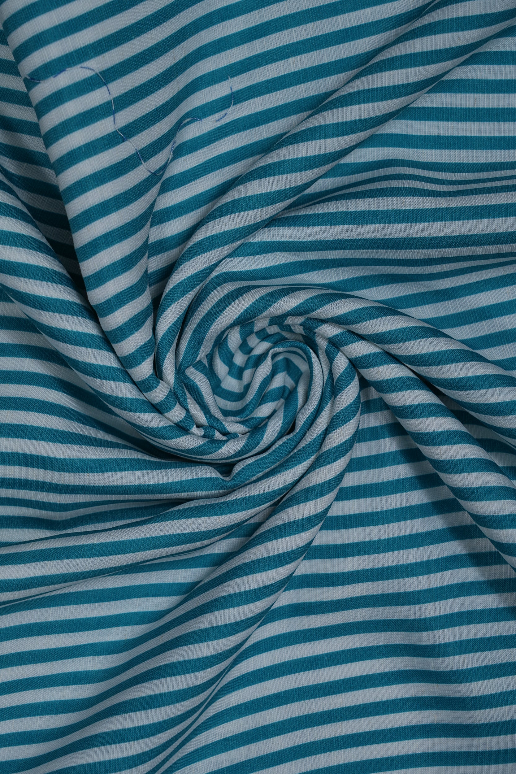 Teal Stripes Pure Soft Linen Shirting Fabric (Width 44 Inches)