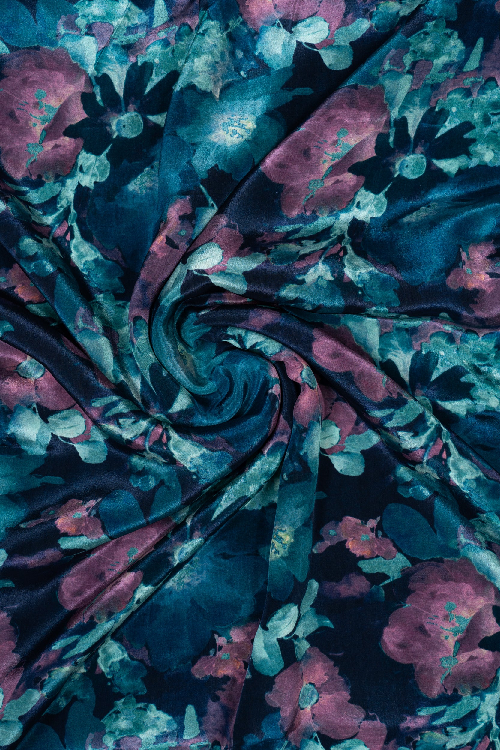 Turquoise & Bloom Fusion Floral Printed Pure Natural Crepe Fabric (Width 44 Inches)